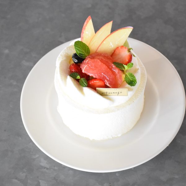 滑らかな生クリームとフレッシュなフルーツがたっぷりと乗った、贅沢な味わいのケーキです。