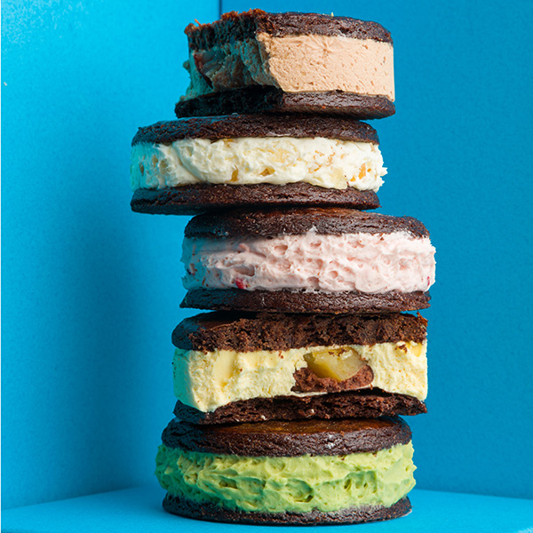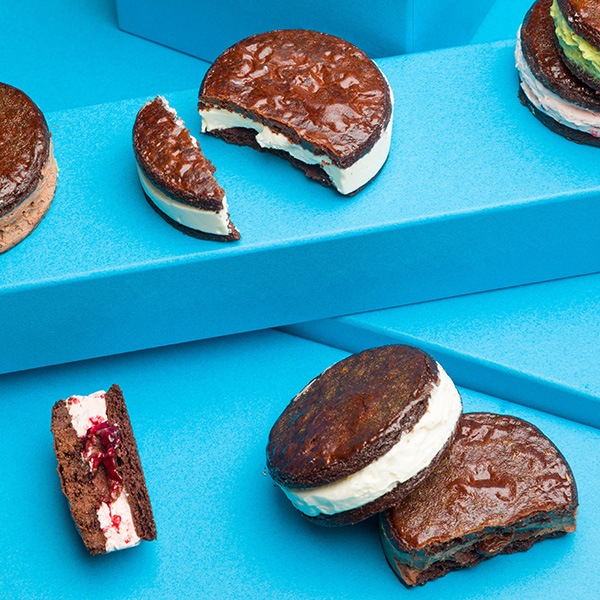 旬の果物やガナッシュといっしょにチョコバタークリームをチョコレートサブレにサンドした、当手の一番人気商品です。
