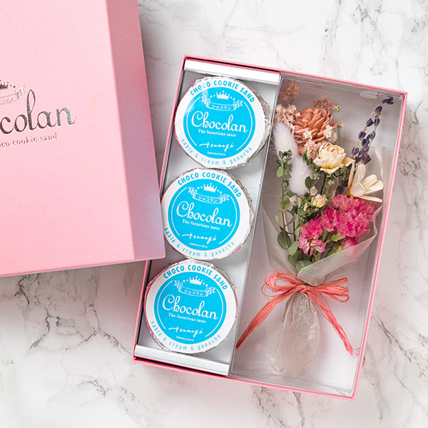 ショコラン ショコラン・母の日限定セット【2021年】 花屋はないちさんのドライフラワーと特別仕様のショコラン3種とを、特注したピンクの貼り箱に入れた、かわいいセット。ショコランのフレーバーは、ローズフランボワーズ、ロイヤルミルクティー、ヘーゼルナッツショコラサレです。 PREV NEXT