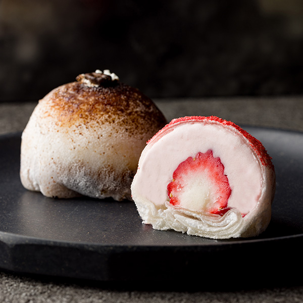 季節スイーツなど ジェラート大福 つつみん 自家製ジェラートを用いた、新感覚ひんやりスイーツ。外はモチモチ、中はなめらかな食感です。 ●ショコラ チョコチップ入りチョコジェラート+生チョコ ●いちご いちごミルクのジェラート+いちご(1個まるごと) ●ティラミス ティラミスのジェラート+コーヒーシロップのジェノワーズ ●クッキー&ナッツ チョコチップとナッツ(アーモンド、ヘーゼルナッツ、くるみ)のジェラート PREV NEXT