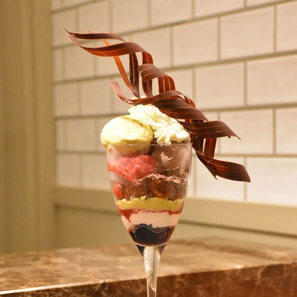 季節スイーツ パルフェ スリーズ マダガスカル産カカオ「サンビラーノ」を使用したショコラジェラートを、たっぷりと。さくらんぼのほどよい甘みとピスタチオの香ばしい風味が広がる、後口が爽やかなパルフェです。 NEXT