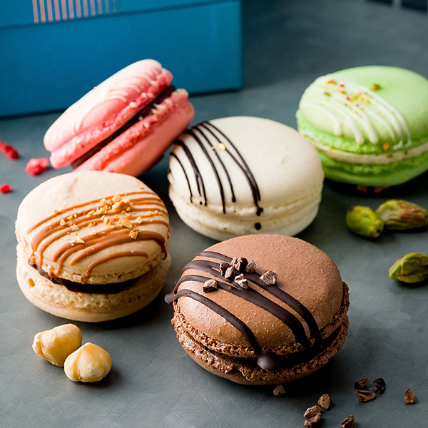 グリオットピスターシュ、フランボワーズショコラ、ショコラ、ヘーゼルナッツ、バニラをご用意しました。